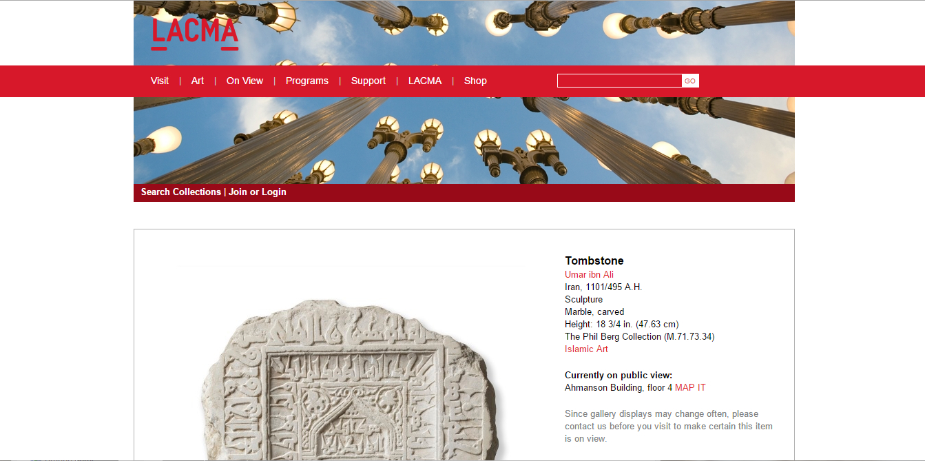 As I said, the LACMA website does not provide extensive information over the tombstone: