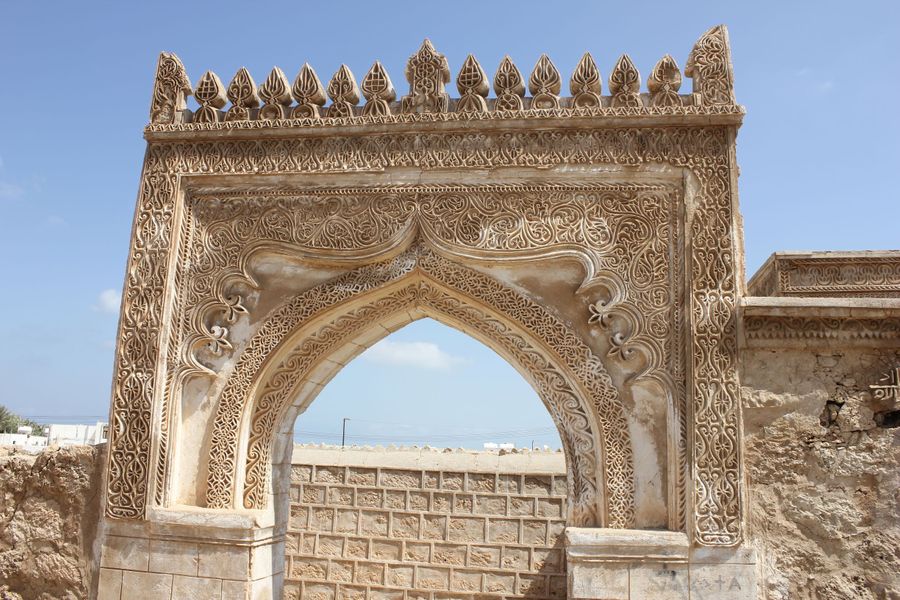 The interior design, featuring engraved and stucco decorations, is similar to that found in India and Yemen. The arch gateway is beautifully crafted with geometric shapes and carvings and Qur’anic verses are written on the top of the façade.